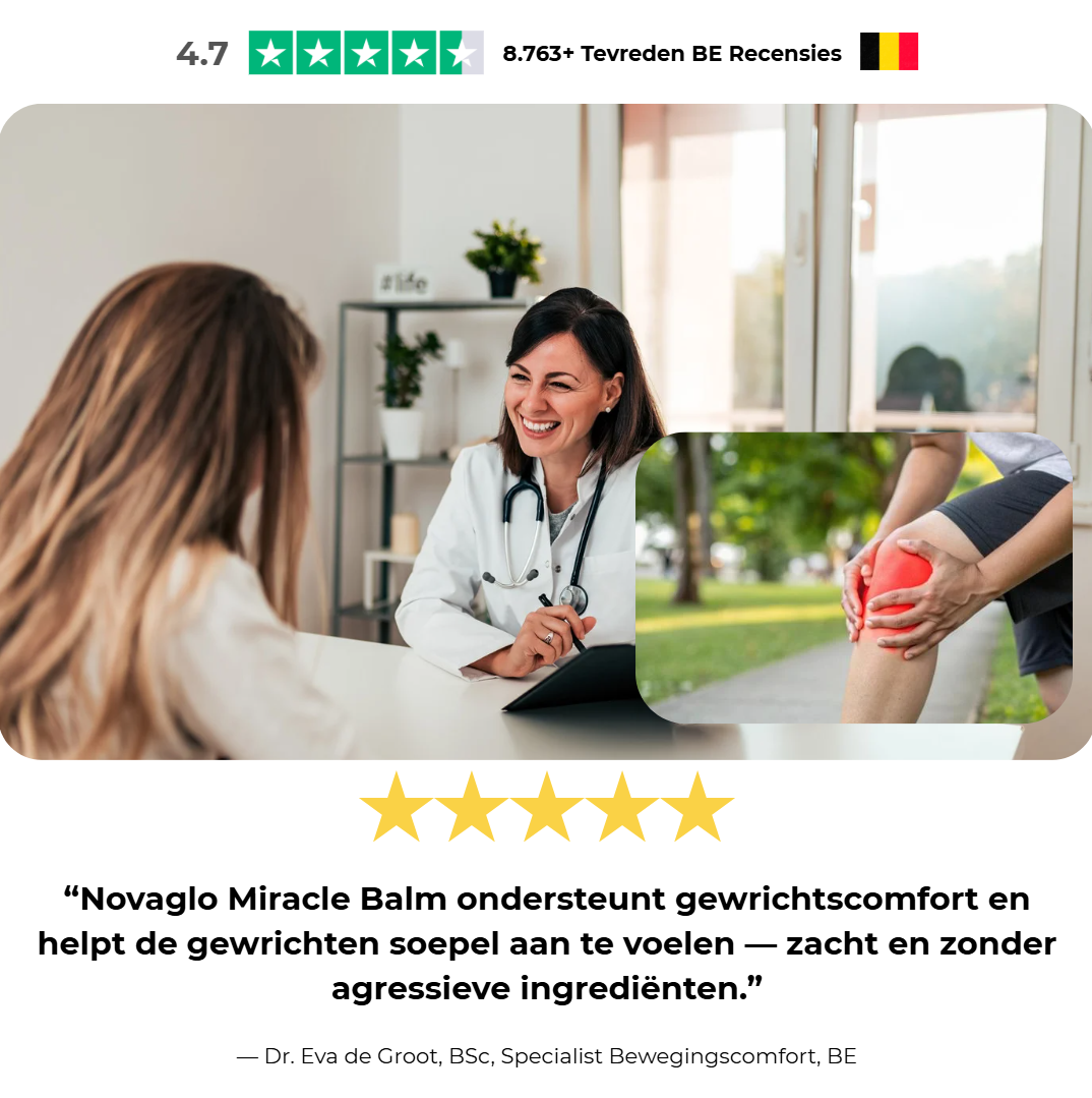 Novaglo Miracle Balm is ontwikkeld om volwassenen te ondersteunen bij dagelijkse gewrichtscomfortproblemen door eenvoudig in een consistente routine te passen. In plaats van te vertrouwen op agressieve crèmes of intensieve behandelingen, richt Miracle Balm zich op zachte, natuurlijke verzorging die geleidelijk helpt de gewrichten comfortabeler en soepeler te laten aanvoelen.